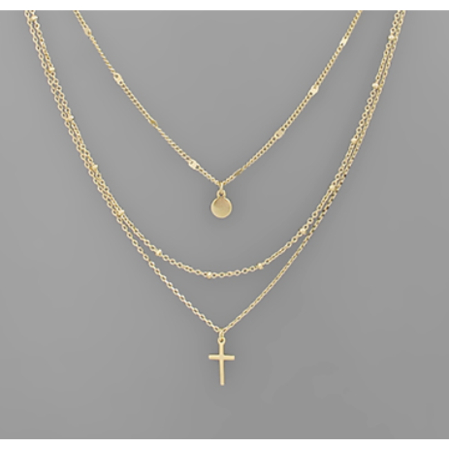 3 Layer Cross & Disc Necklace