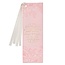 The pink faux leather bookmark is heat-debossed with a garland of flowers at the top and bottom. In the center, the sentiment is displayed in heat-debossed hand-lettered words.