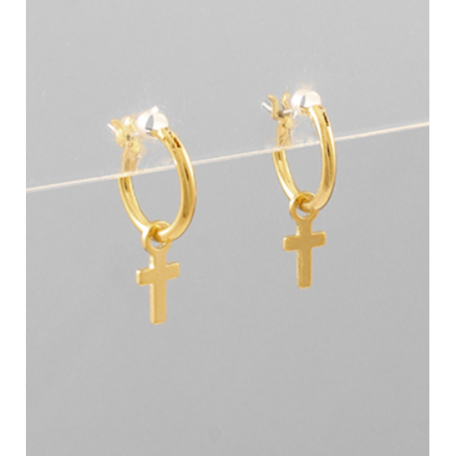 Review Brass Cross Dangle Hoops - Gold