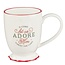 The Let Us Adore Him White Ceramic Coffee Mug is part of the Come Let Us Adore Him Collection that includes a ceramic coffee mug, resin ornament, ceramic ornament, ceramic plate, paper napkin set, wall art, and gift bag.