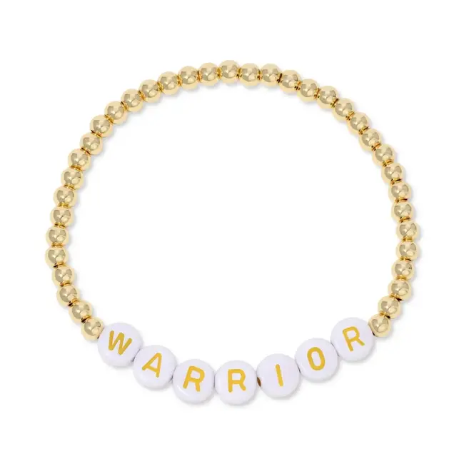 You'll adore this bracelet for its empowering message and elegant design. The prominent "WARRIOR" lettering in white and gold beads serves as a constant source of inspiration, while the 18K gold plated brass beads add a touch of sophisticated shine. Its stretch fit ensures comfort for all-day wear. This makes it an ideal jewelry gift for anyone seeking an empowering accessory, a meaningful bracelet, or unique beaded jewelry.