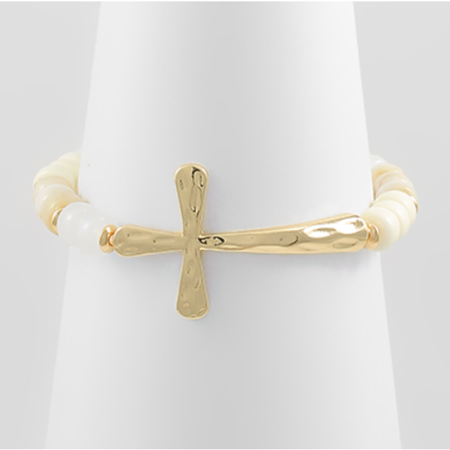 Half Beaded Cross Bracelet - White
