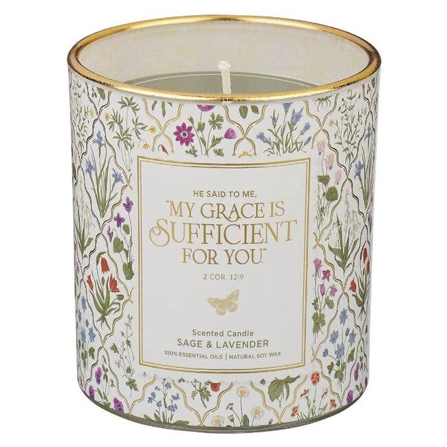 The Sufficient Grace Sage and Lavender Scented Candle in a Glass Jar makes a thoughtful Mother's Day gift for a mom who exemplifies grace, a comforting birthday present for a friend who needs encouragement, or a sweet thank-you gift for a woman who brings calm and beauty wherever she goes.