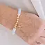 This gorgeous stretch bracelet features a beautiful blue dyed jade stone and our favorite anti-tarnish gold beads. We added a Cubic Zirconia crystal cross as a charm for this beauty.Â