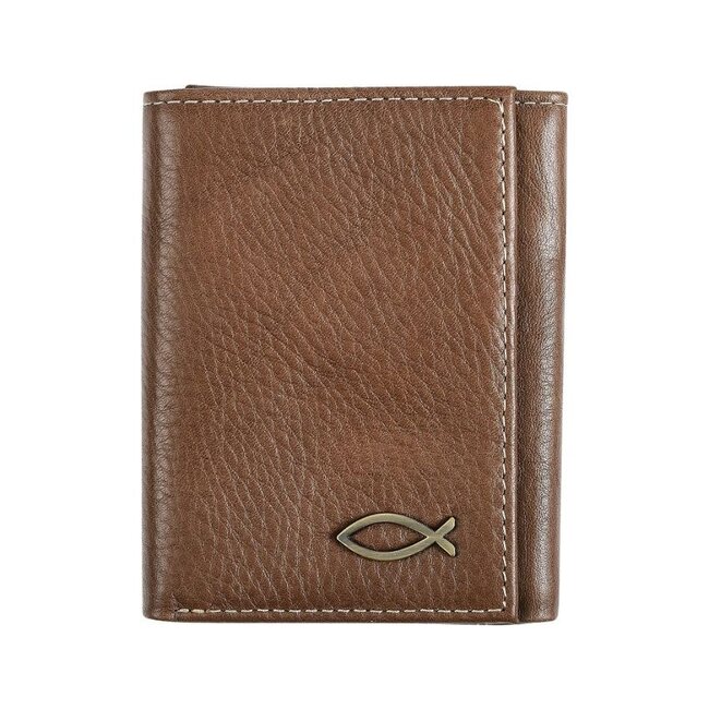 Ichthus Fish Brown Genuine Leather Trifold Wallet