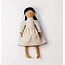 She has embroidered features and long, wool yarn hair. Each Mary doll is dressed in the same outfit - a removable beige dress and Marian blue veil along with a small tote bag.