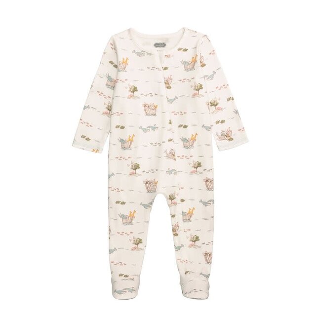 Delight in the comfort and charm of the Noah's Ark Zip Sleeper, designed for your little one's peaceful slumber. Crafted from soft, breathable cotton interlock fabric, this footed sleeper ensures gentle warmth and coziness throughout the night. The convenient zipper closure allows for easy dressing and diaper changes, making it a practical choice for busy parents. Sized perfectly for infants aged 0-3 months, this sleeper is made from 100% cotton, providing a natural, hypoallergenic touch against delicate skin. The adorable Noah's Ark design adds a playful and endearing element, making bedtime a delightful adventure. Ideal for gifting or everyday wear, this sleeper combines functionality with whimsical style, ensuring your baby sleeps soundly and comfortably.