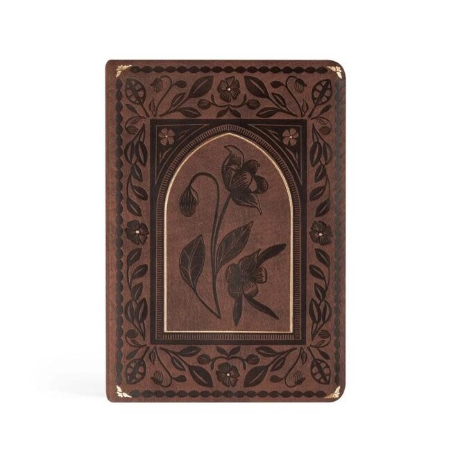 The deep brown color and delicate gold foiling outlining the embossed florals of this Notebook were inspired by the beauty of the Cathedral of Palma in Mallorca, Spain. Its intricate architecture inspired the detailed florals and arched design. Our heart behind this design is that it would remind you of the rich depth that the Word of God carries. The back cover features the verse from Romans 11:36: “For from him and through him and to him are all things. To him be the glory forever. Amen.” This verse calls us to reflect on God’s power over every detail of our lives. All the glory for every good thing is his.