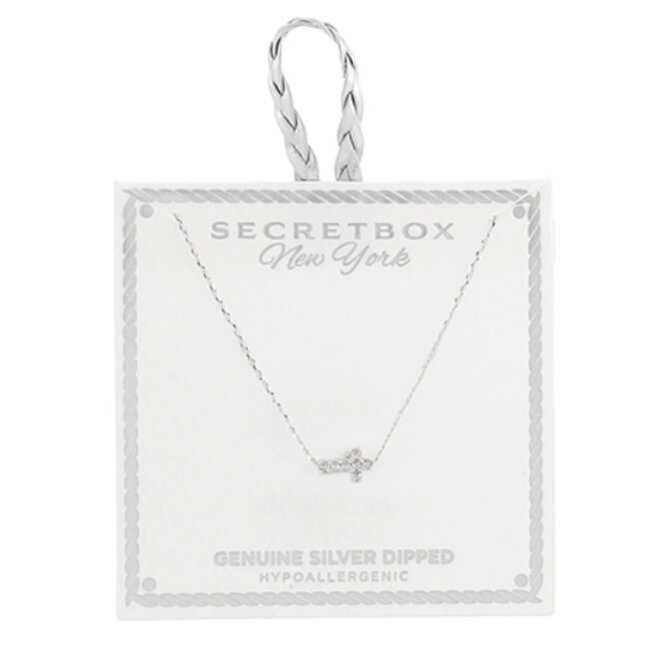 Pave CZ Tiny Cross Necklace - Silver
