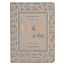 The journal's gilt-edged pages beautifully harmonize with the gold-foiled accents on the cover. The single-color interior offers an arched frame on each page, enclosing a lined space designed for recording answers to the same question over three consecutive years. This layout is designed for a three-year response cycle to the same question, making this a personal growth journal that follows the calendar year, starting on January 1.