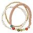 Review Set of 3, "REDEEMED" Coordinating Warm Toned Multi, Gold, Pearl Beaded Stack Bracelet, 7.5" Around