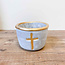 Cement candle holder. 3.25" w X 4.5" h X 3.25" d