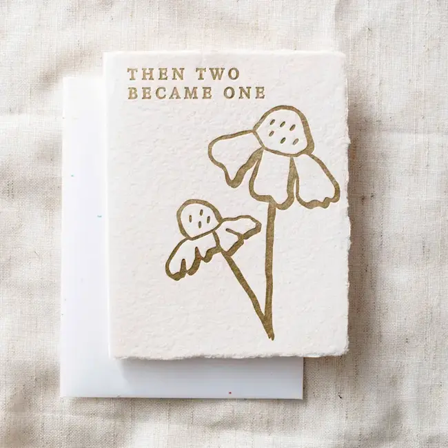 Celebrate love and unity with this elegant Christian wedding card that reads “Then Two Become One.” Inspired by Scripture, this timeless design is perfect for weddings, anniversaries, or engagements. Printed on eco-friendly, premium paper, it’s a meaningful keepsake for couples of faith and a beautiful addition to any Christian stationery collection. Final Stock – available while supplies last. Saying: "Then two became one"