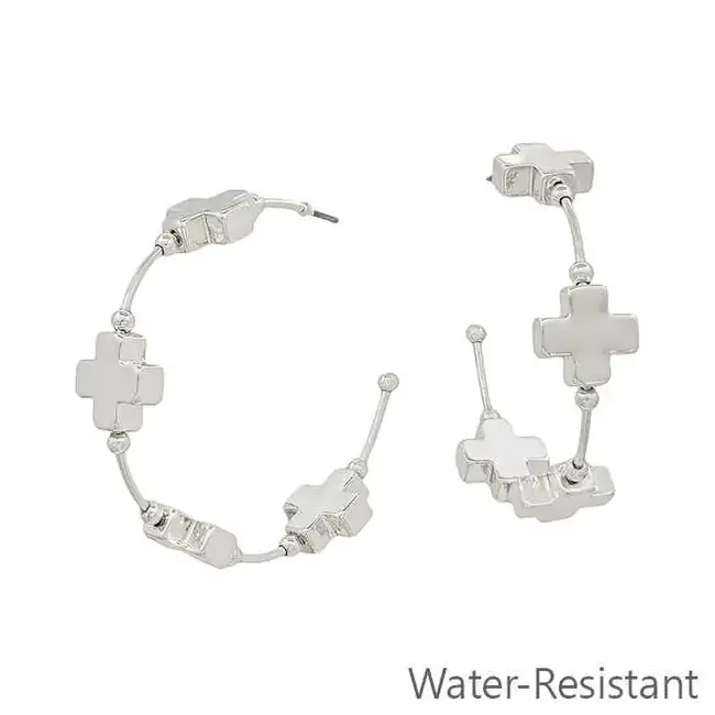 Review Water Resistant Silver Wired with Silver Cross 1.75" Hoop Earring